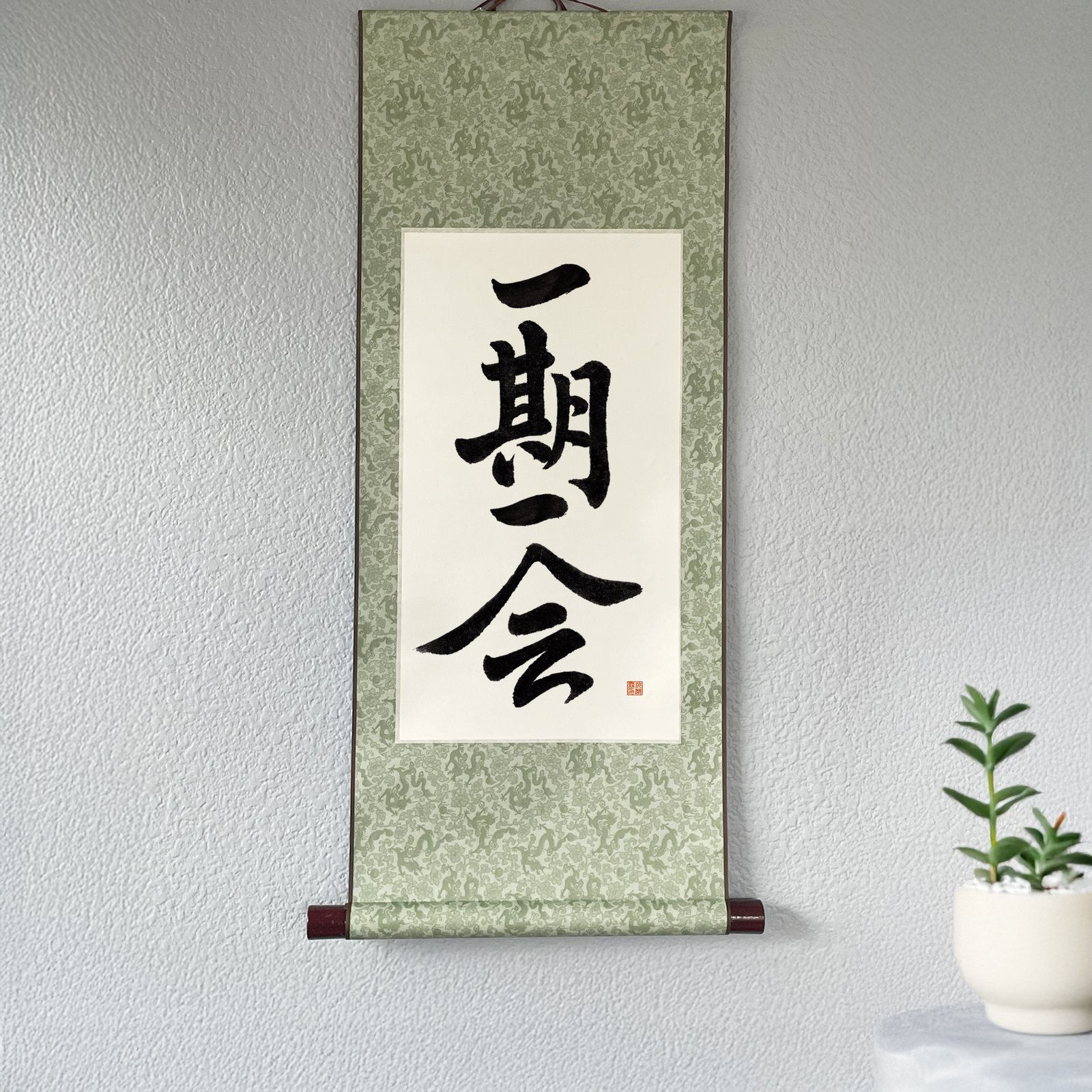 Live in the Moment- Japanese Calligraphy Scroll, Zen Art, Original Handwritten Kanji, Meditation Decor, Ichigo Ichie, Cherish the Moment