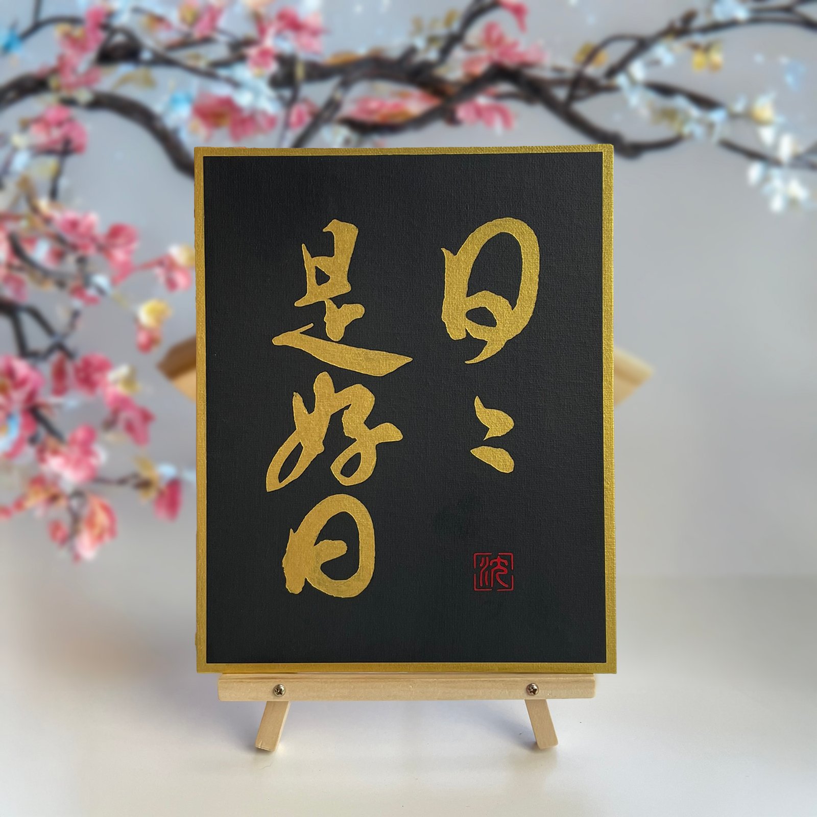 Bring Zen inspiration into your home with this handcrafted Japanese calligraphy artwork “日日是好日” (Every Day is a Good Day).