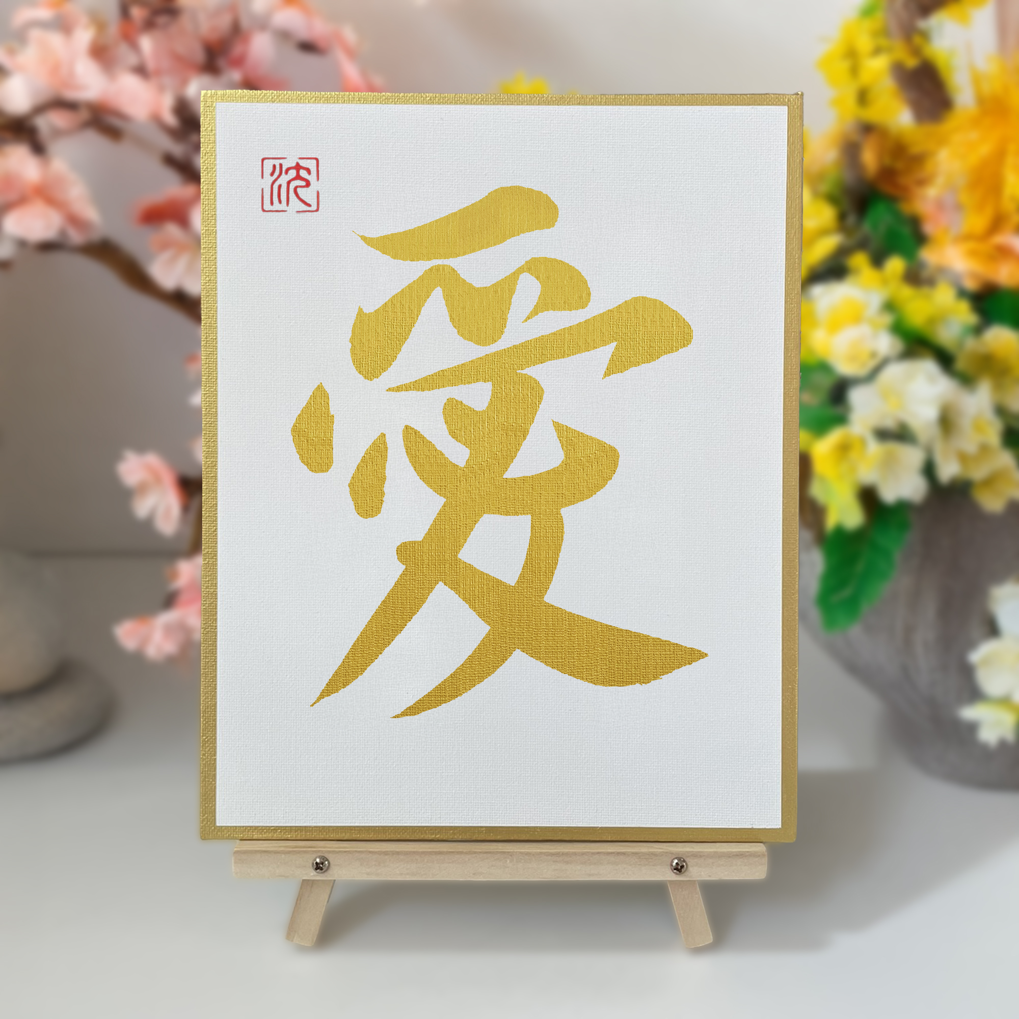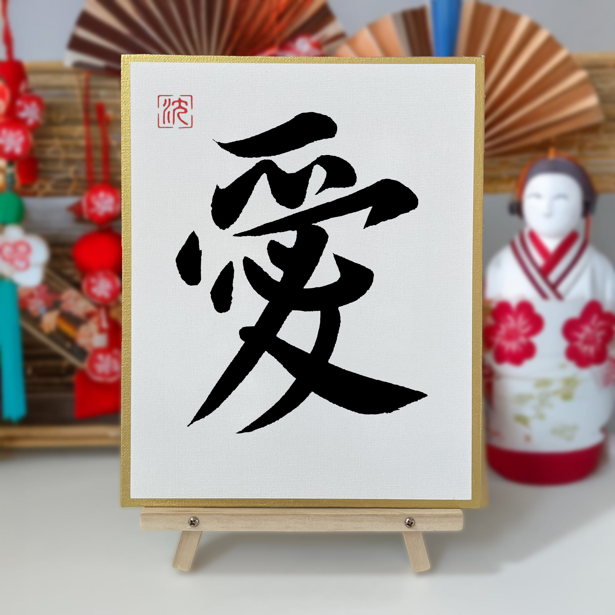 Bring the elegance of East Asian calligraphy into your home with this hand-painted original artwork of the character “愛” (Love).