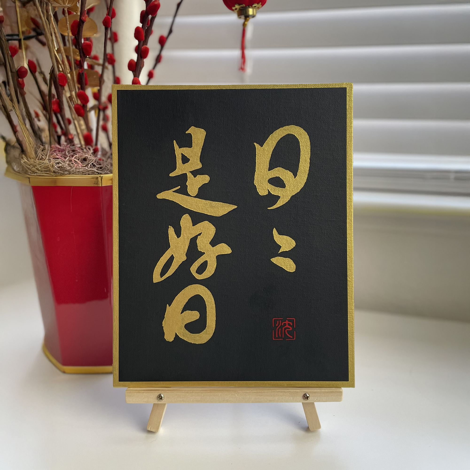 Bring Zen philosophy into your home with this hand-painted Japanese calligraphy artwork “日日是好日” (Every Day is a Good Day).