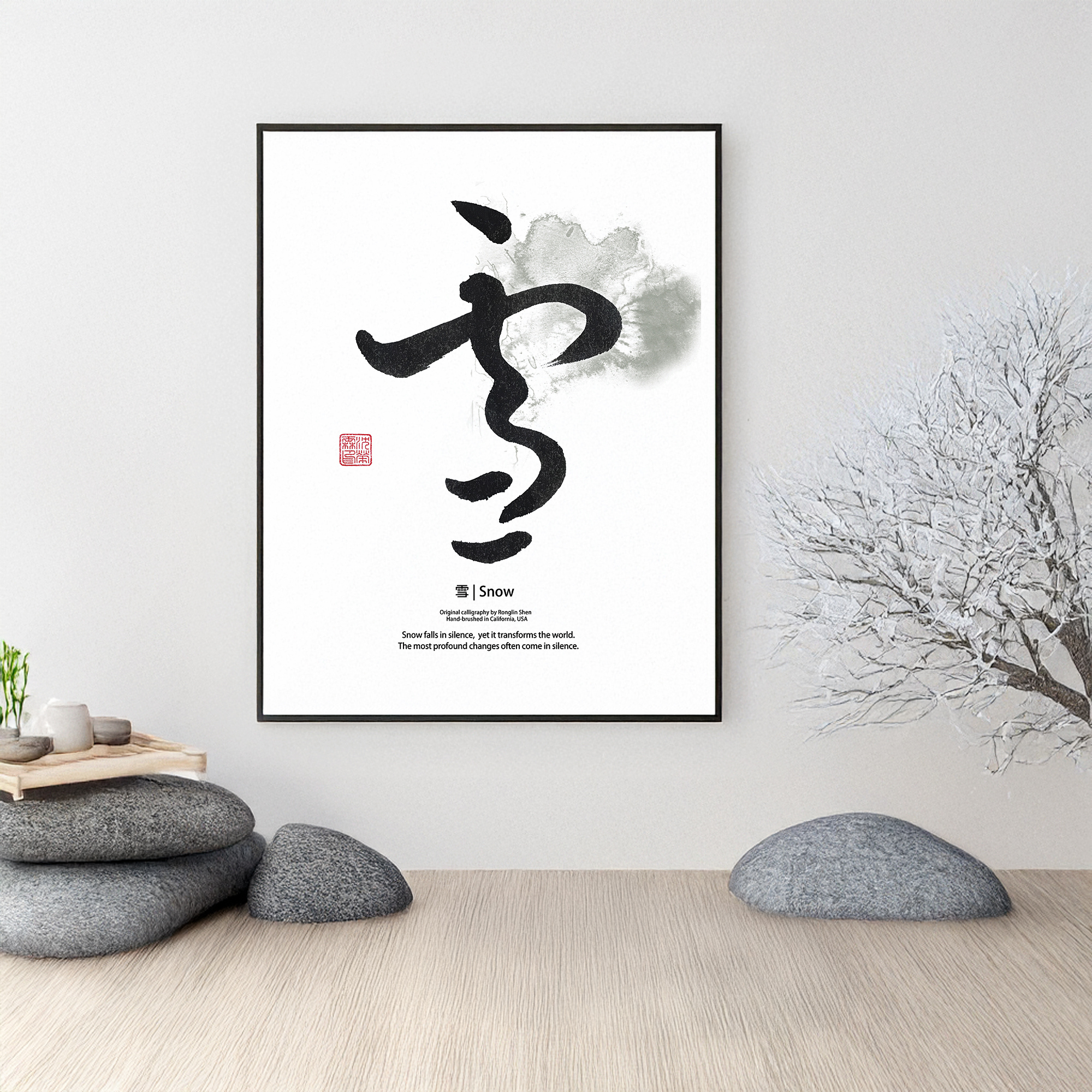 Snow – Zen Minimalist Calligraphy Art Print | Chinese & Japanese Shodo Wall Decor | Custom Ink Brush Style