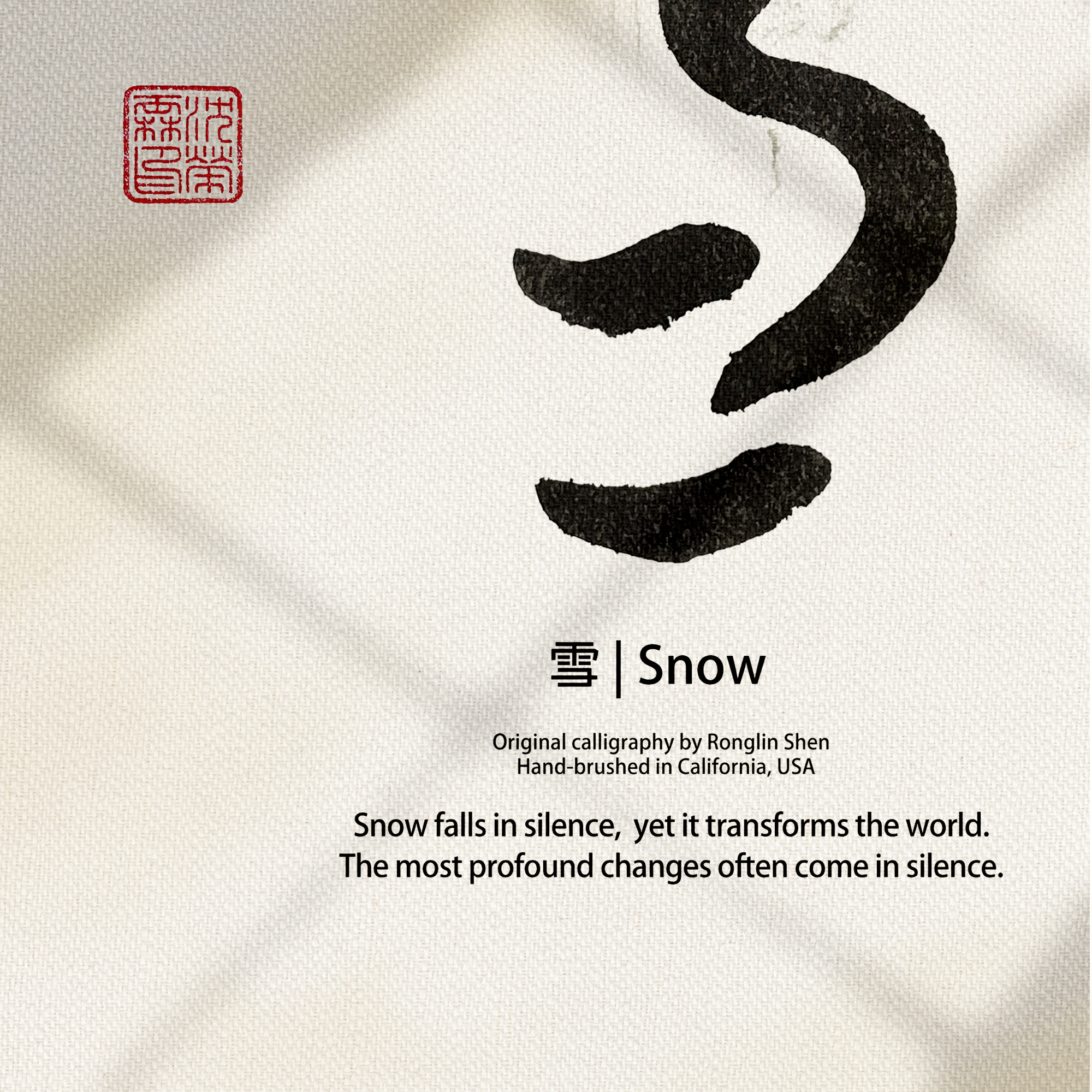 The character “雪” (Snow) holds a quiet poetry in East Asian philosophy — symbolizing purity, transience, and silent transformation. In both Chinese and Japanese traditions, snow is not simply a season’s gift, but a metaphor for stillness, clarity, and the gentle passing of time. It falls without sound, melts without regret — like a mindful breath in winter air.